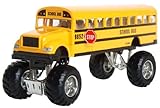 - This school bus measures 8.5? long and features big monster truck wheels too!